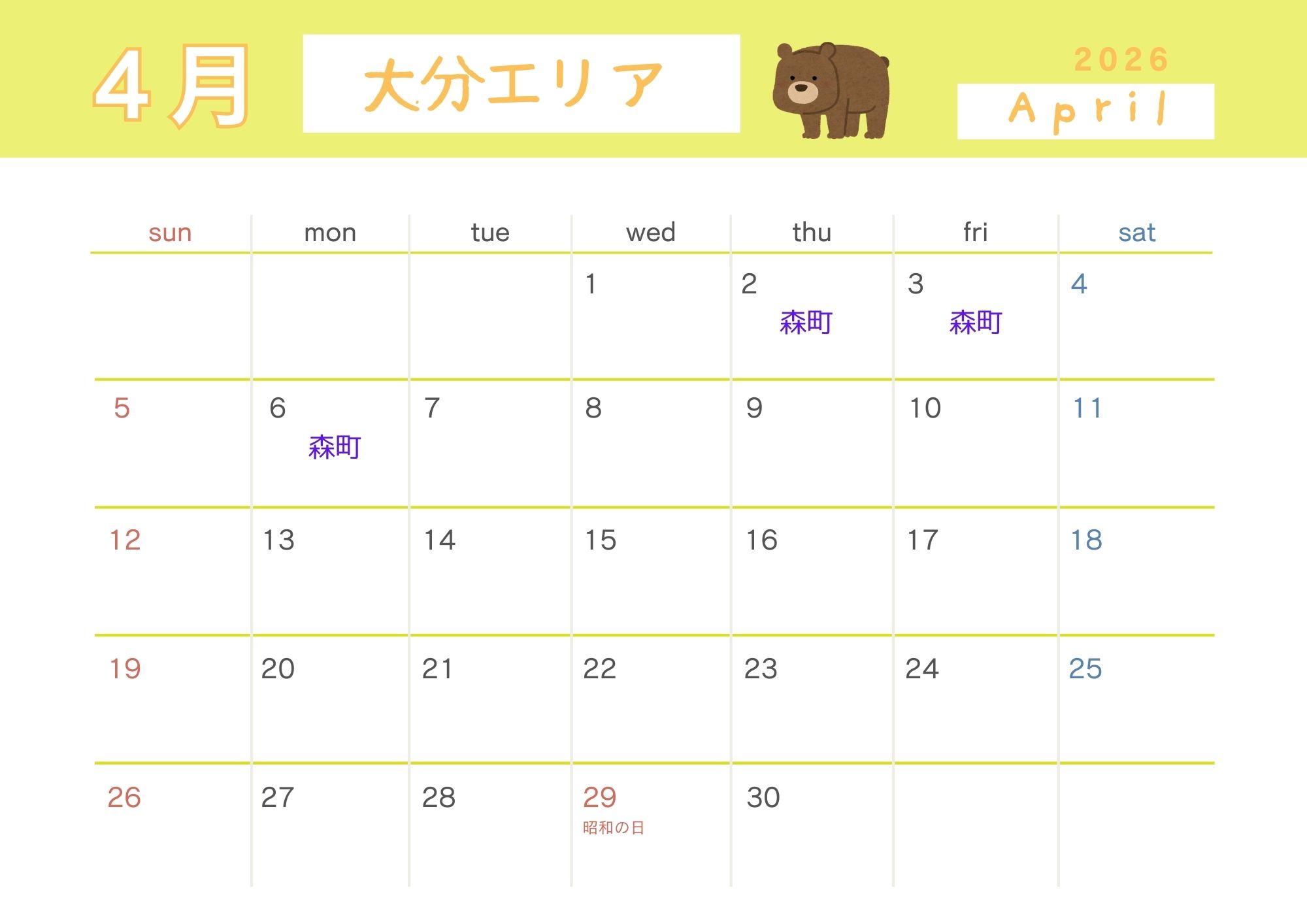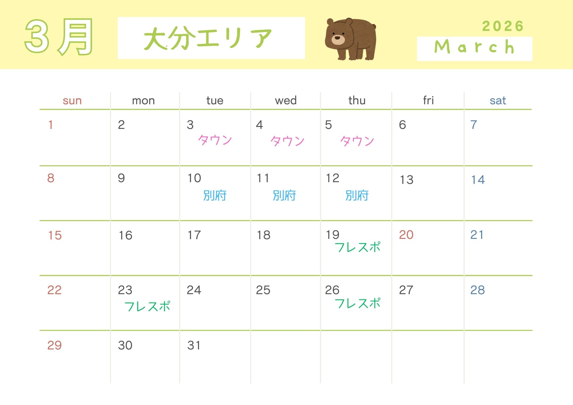 🐻大分県内の開催日スケジュールはこちら↓↓↓